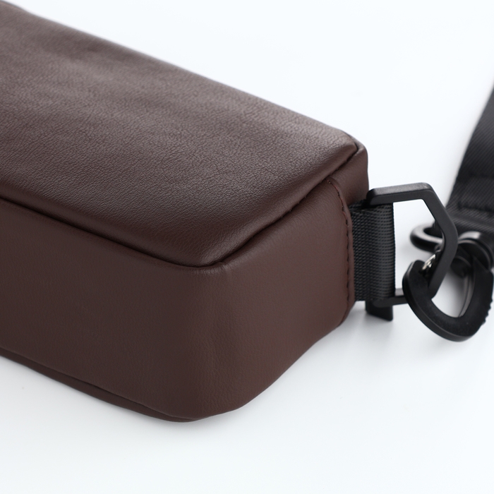 Этот аксессуар, выполненный из искусственной кожи, сочетает в себе стиль и практичность в компактных размерах.