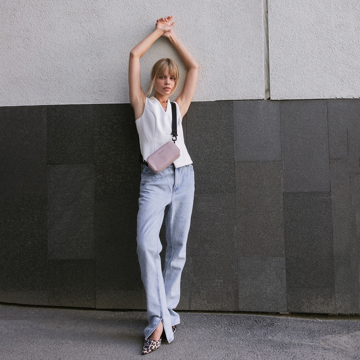 Откройте для себя идеальную спутницу для городских приключений и элегантных выходов — сумку от TEXTURA в розовом цвете.