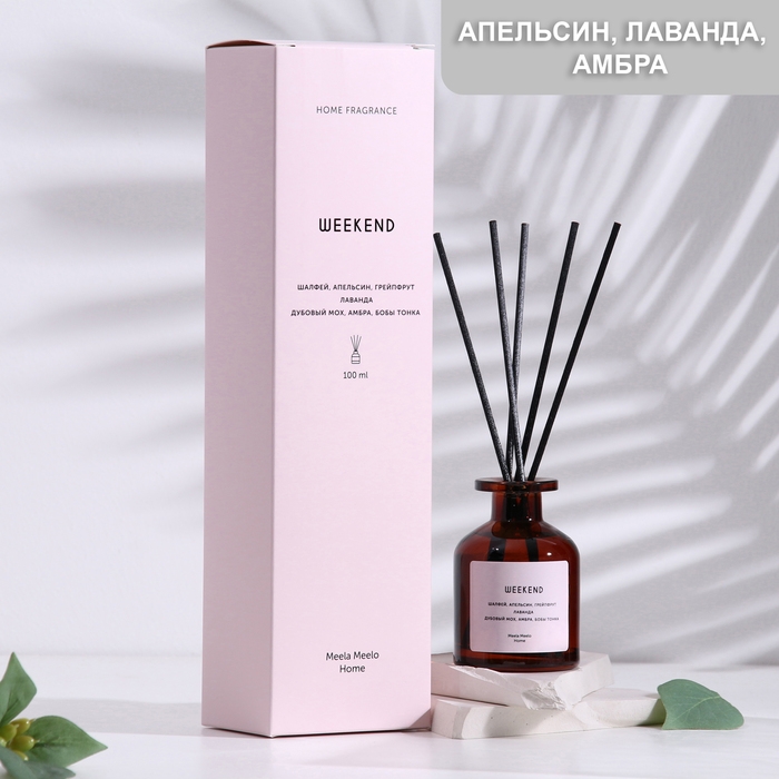 Диффузор WEEKEND поставляется в стильной колбе из тёмного стекла, которая не только выглядит элегантно, но и защищает содержимое от воздействия света. Качественная упаковка из гофрированного картона с подложкой обеспечивает безопасную доставку и подчёркивает уникальный стиль декора.