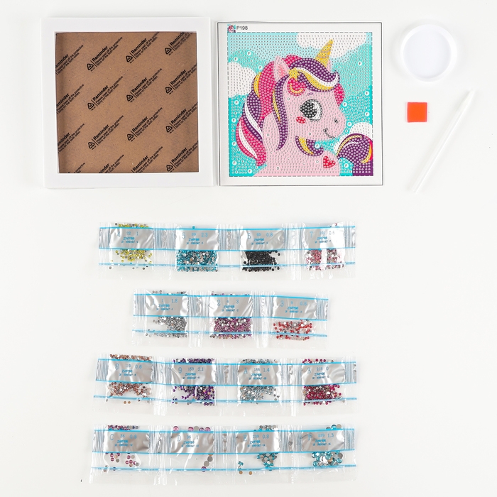 Алмазная мозаика для детей на раме с полным заполнением разнымии стразами «Единорожек», 15 х 15 см