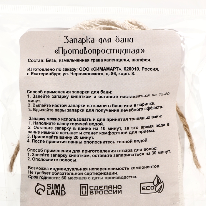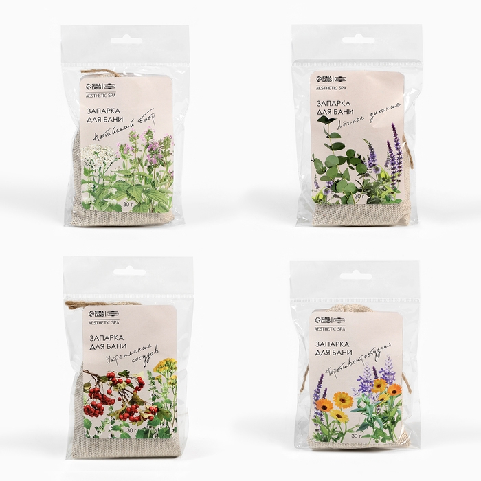 Набор запарок для бани 4 шт "Противопростудная, Алтайский сбор, Легкое дыхание, Укрепление"