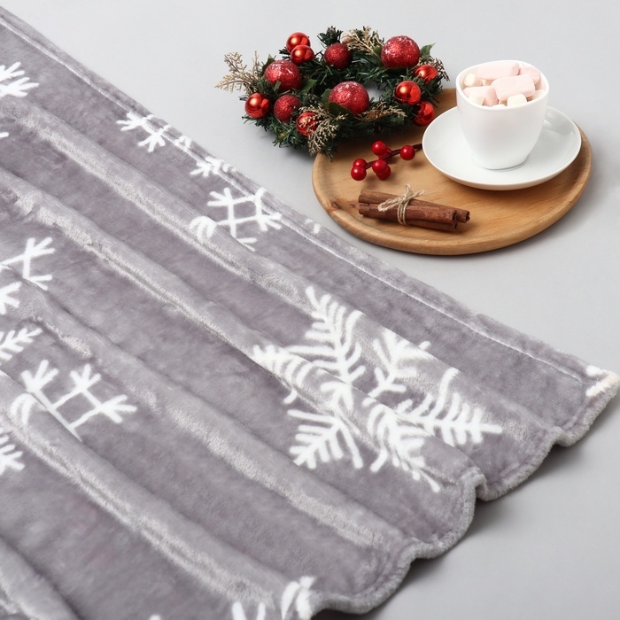Плед LoveLife "Серые снежинки" 180*200 см,100% п/э, велсофт 280 гр/м2