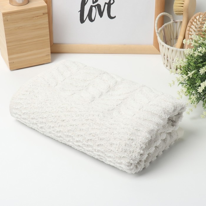 Полотенце махровое Этель "Узор", цв. молочный, 50х90 см, 83% хл, 17% лён, 500 г/м2