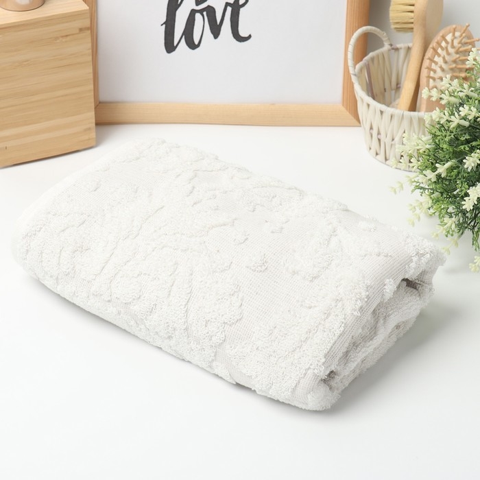 Полотенце махровое Этель "Классика", цв. молочный, 50х90 см, 83% хл, 17% лён, 500 г/м2