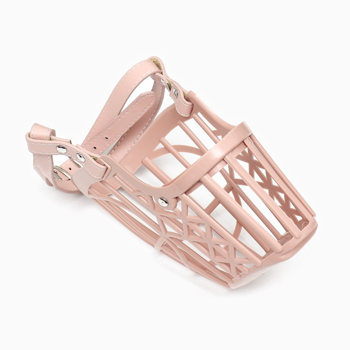 Намордник пластиковый №5 с ошейником из эко кожи ОМ 30 см ДН 11 см ОШ 47-62 см