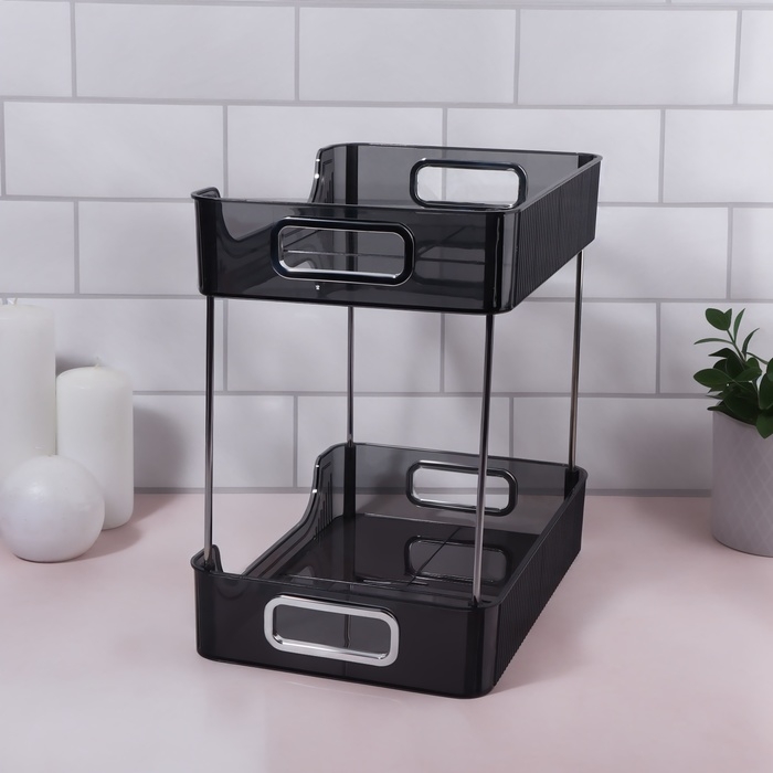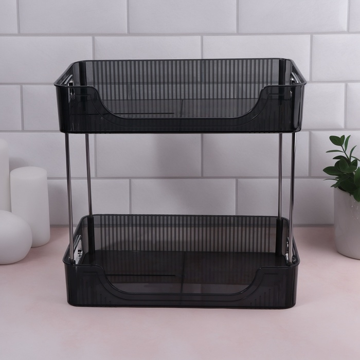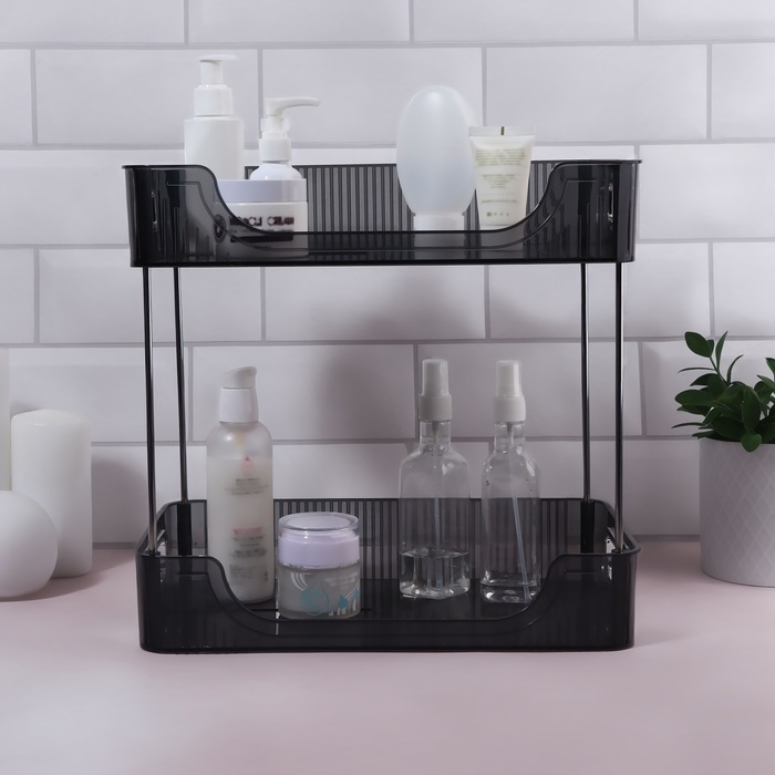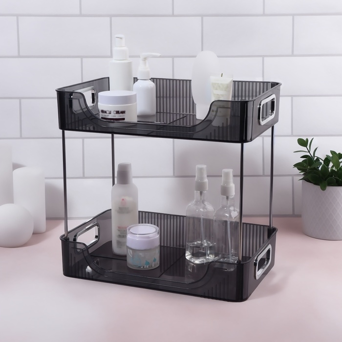Благодаря современному минималистичному дизайну, органайзер станет гармоничным дополнением любого пространства. У органайзера два уровня, что значительно увеличивает место для хранения, а также у каждого уровня изделия есть ручки золотистого оттенка, что добавляет изящного вида.