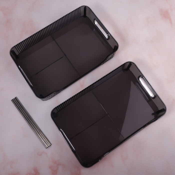 Органайзер для хранения, с ручками, 2 секции, 31 × 20 × 29 см, цвет чёрный/серебристый
