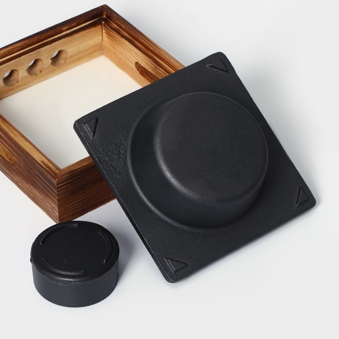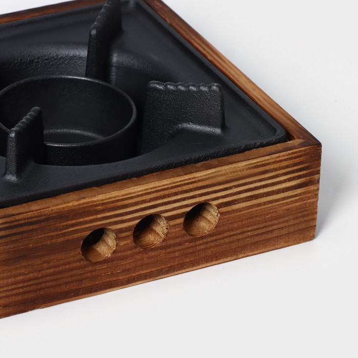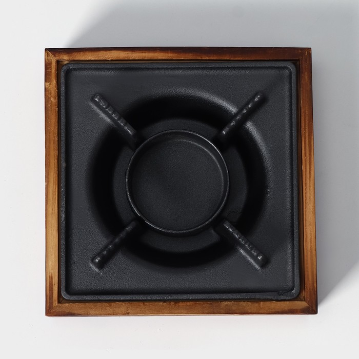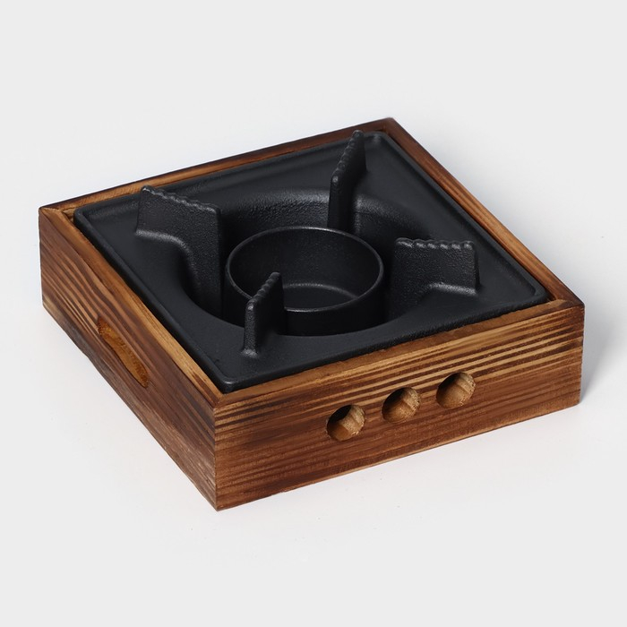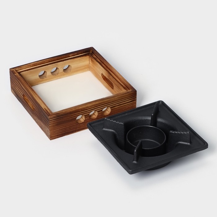 Подставка для подогрева блюд, 20×20×8 см, с деревянной подставкой