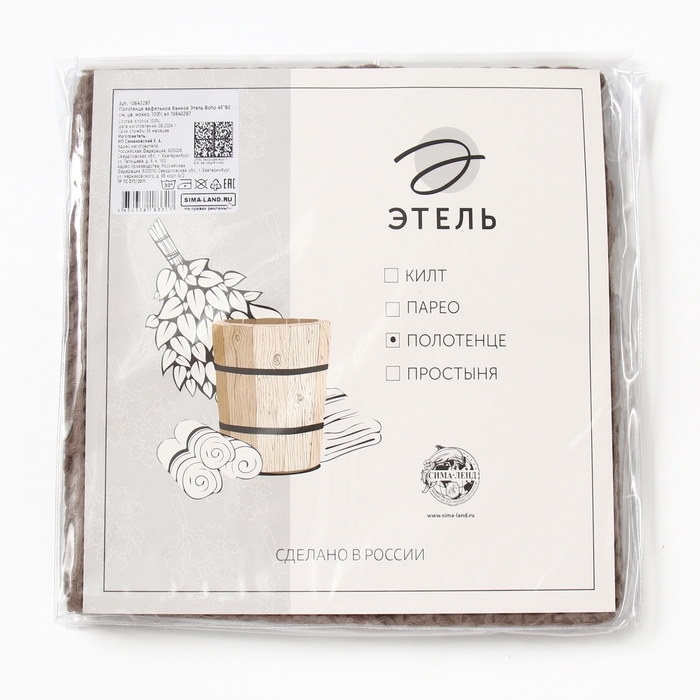 Полотенце вафельное банное Этель "Boho" 45*90 см, цв. мокко, 100% хл
