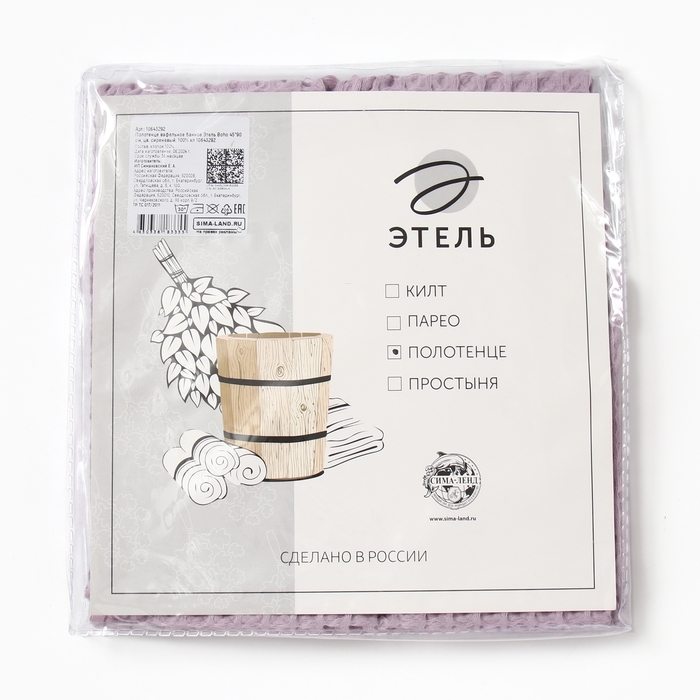Полотенце вафельное банное Этель "Boho" 45*90 см, цв. сиреневый, 100% хл