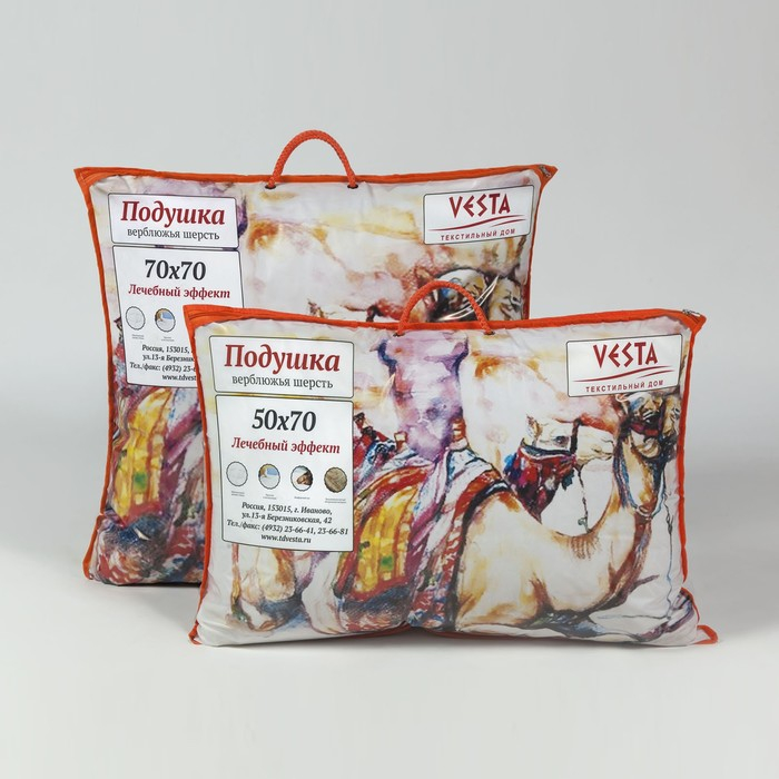 Подушка стёганная 50х70 см, шерсть верблюда, ткань тик, п/э 100% 100%