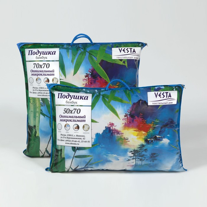 Подушка стёганная 70х70 см, бамбуковое волокно, ткань тик, п/э 100%