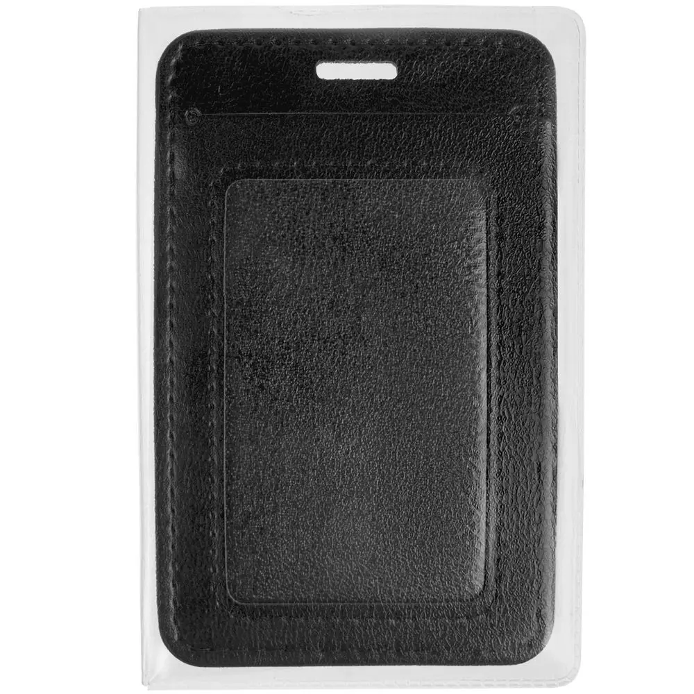 Чехол для карточки с пластиковым окошком. На задней части чехла есть карман для второй карточки или визитки.