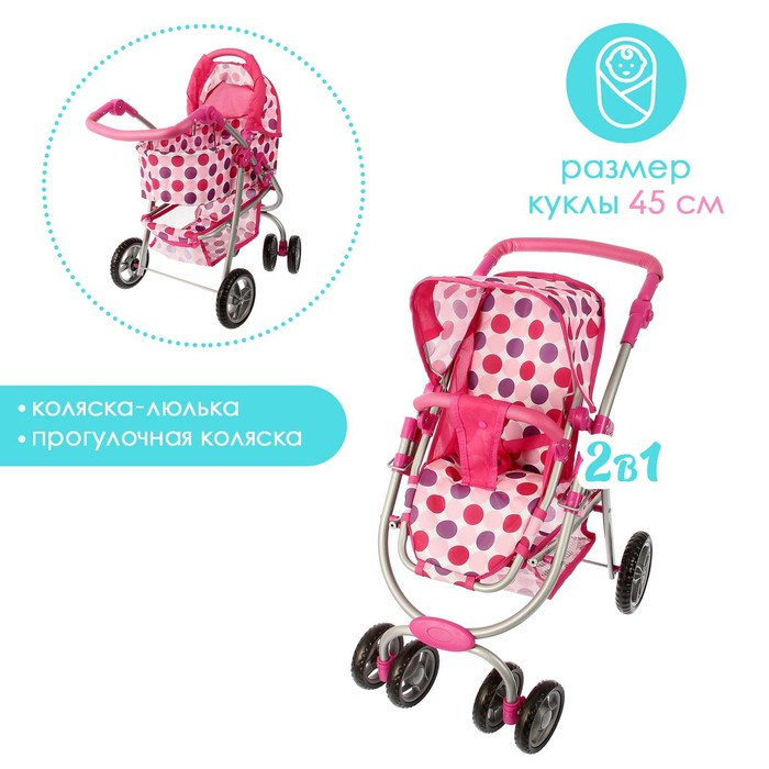 Коляска для кукол зима-лето 2 в 1, регулирует ручка, металлический каркас
