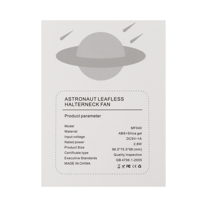 Портативный вентилятор "Астронавт" MF040, 500 мАч, 3 режима, вход Type-С, провод, чёрный