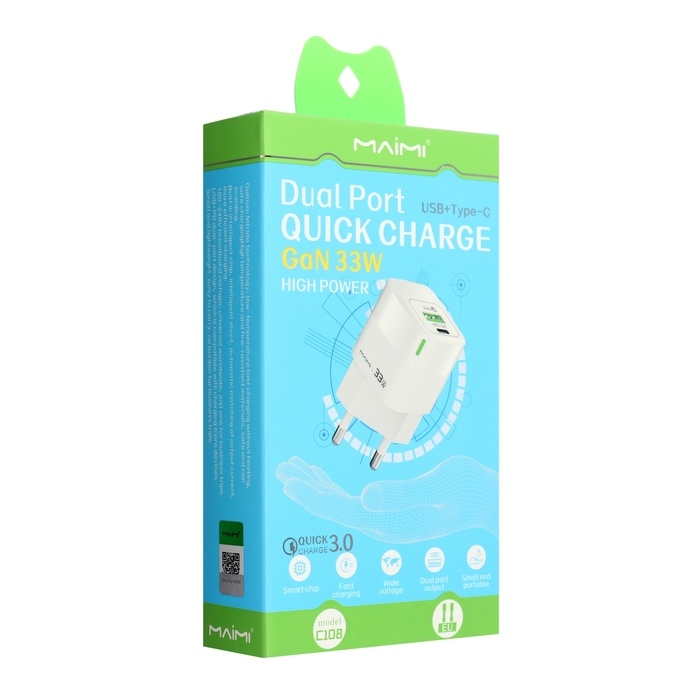 Сетевое зарядное устройство Maimi C108, USB, Type-C, 33 Вт, PD, белое