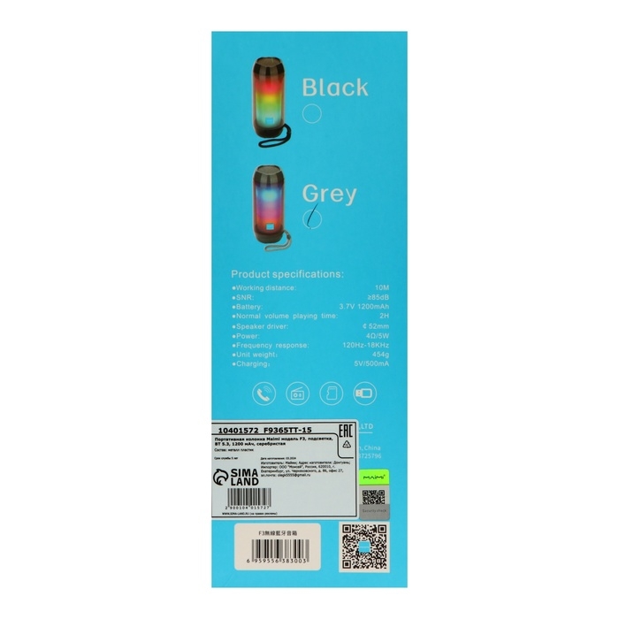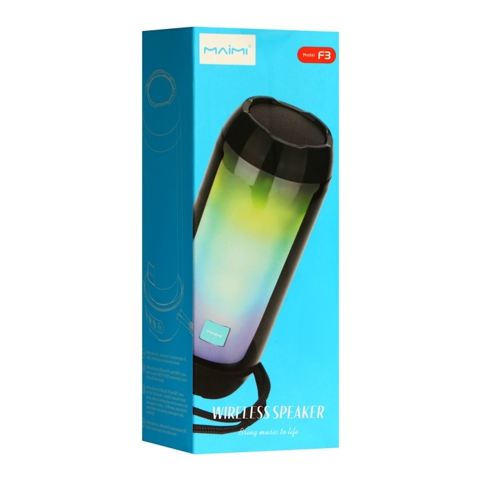 Портативная колонка Maimi F3, microUSB, подсветка, ВТ 5.3, 1200 мАч, серебристая