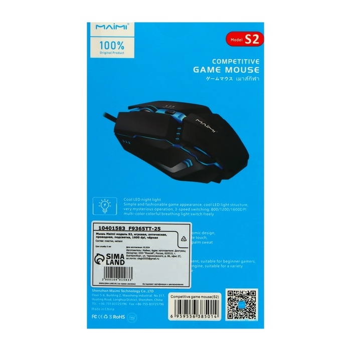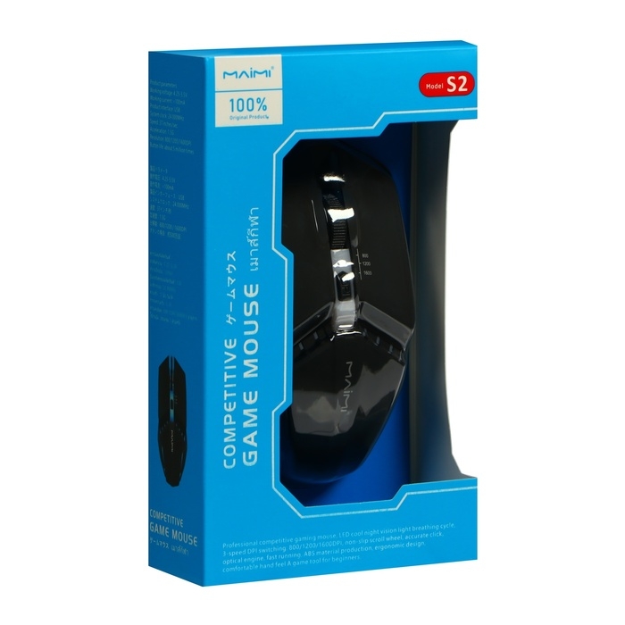 Мышь Maimi S2, игровая, оптическая, проводная, подсветка, 1600 dpi, чёрная