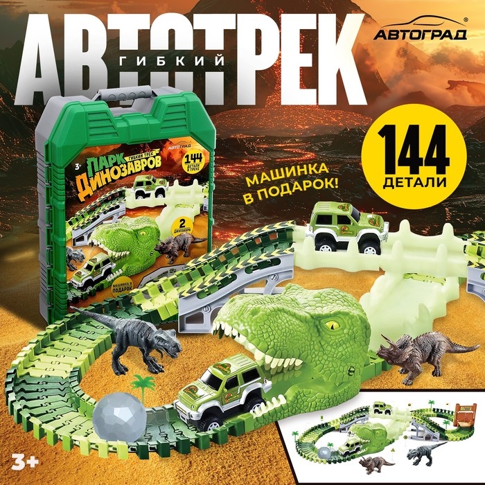Автотрек «Парк динозавров», гибкий, работает от батареек, 144 детали