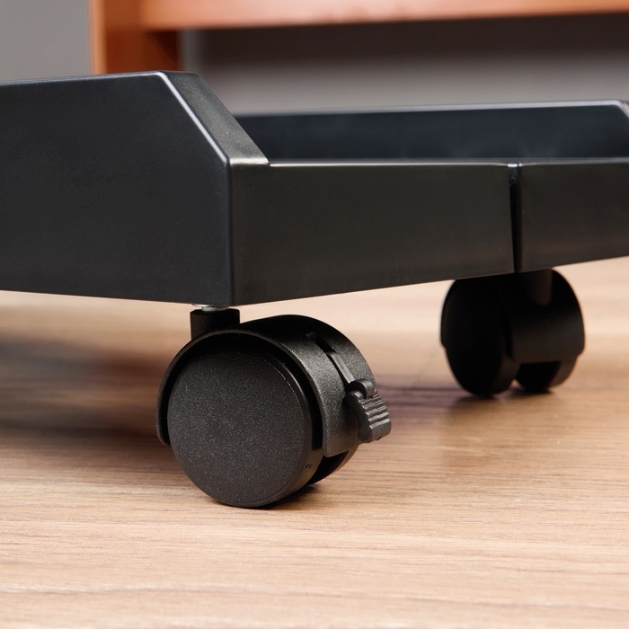 Подставка под системный блок на колёсах, 20/30 - 45 см, металл, пластик, чёрная предназначена для того, чтобы корпус вашего компьютера не касался пола, ковра или рабочего стола, обеспечивая лучший поток воздуха для остывания. Регулируемая подставка подходит для ПК большинства размеров. Ширину можно отрегулировать в соответствии с размером корпуса ПК.
