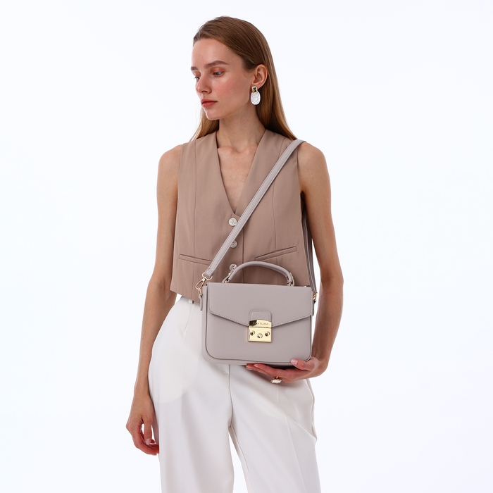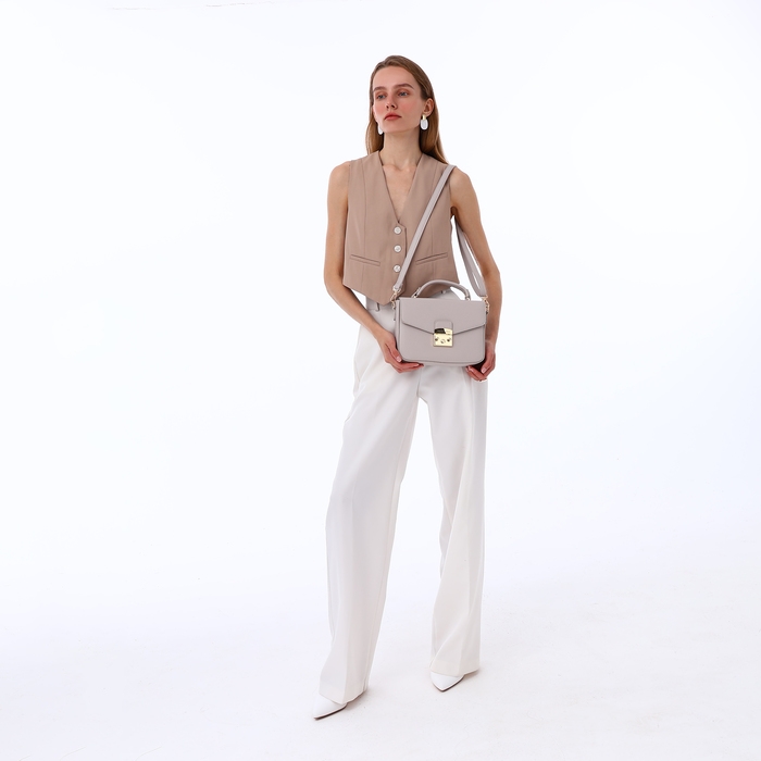 - Изысканный дизайн: сочетание бежевого цвета и золотистой фурнитуры делает сумку универсальной для любого образа.