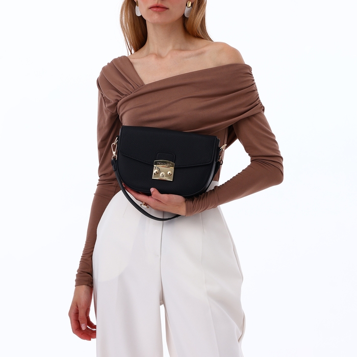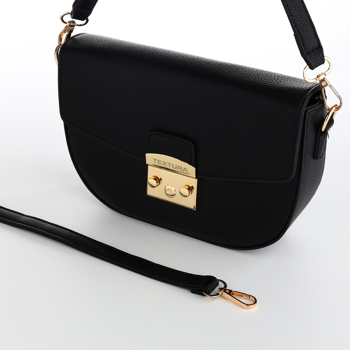 Сумка женская на клапане, TEXTURA, маленький размер, цвет чёрный