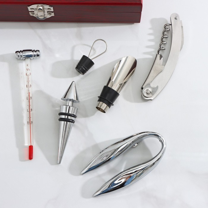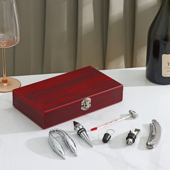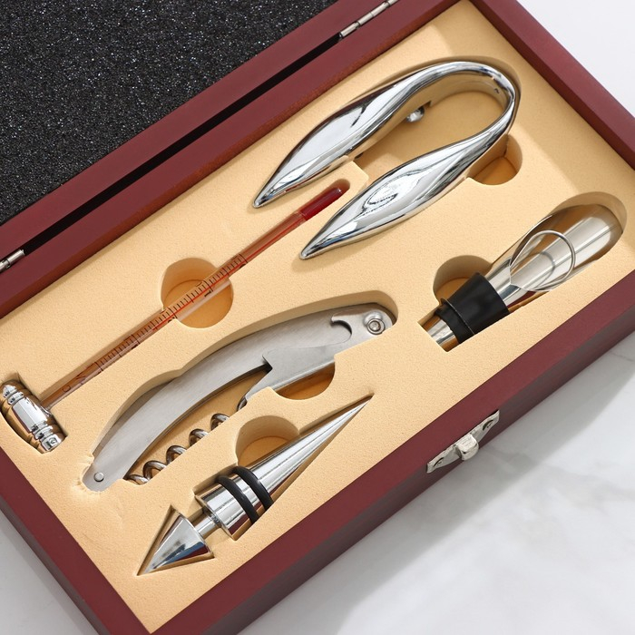Набор для вина, 5 предметов: штопор, нож для срезания фольги, пробка, каплеуловитель, термометр