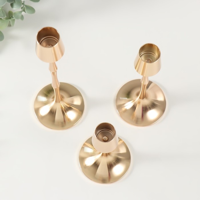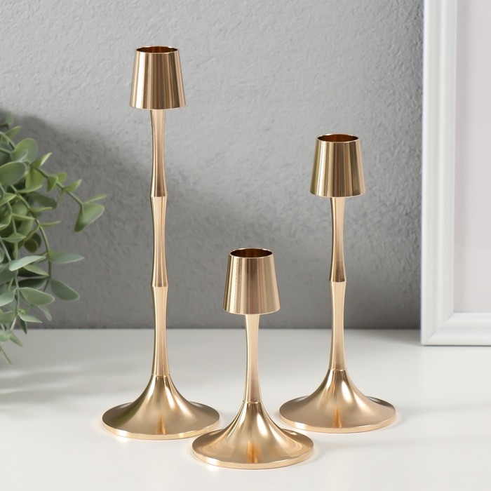 Подсвечник металл "Утончённый зауженный" d=2 см, набор 3 шт h=21,5 см, 16 см, 11 см