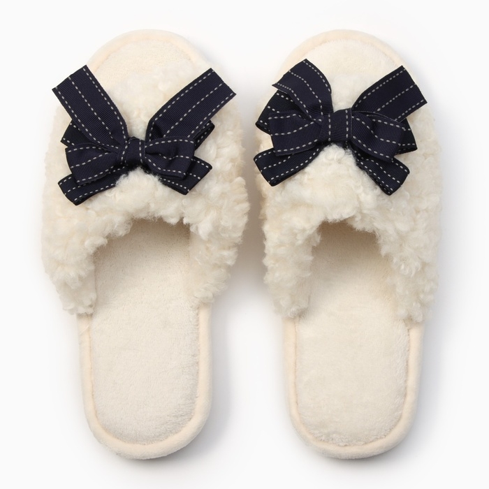 Тапочки женские с открытым носом, размер 40-41, синий бант