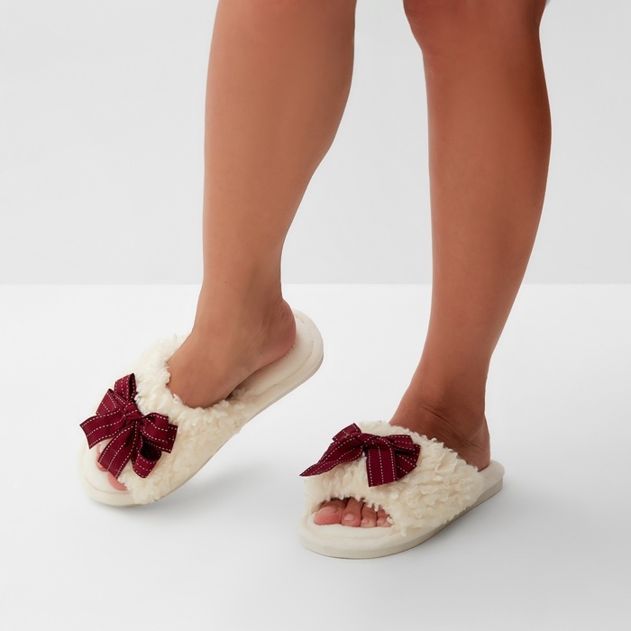 Тапочки женские с открытым носом, размер 36-37, бордовый бант