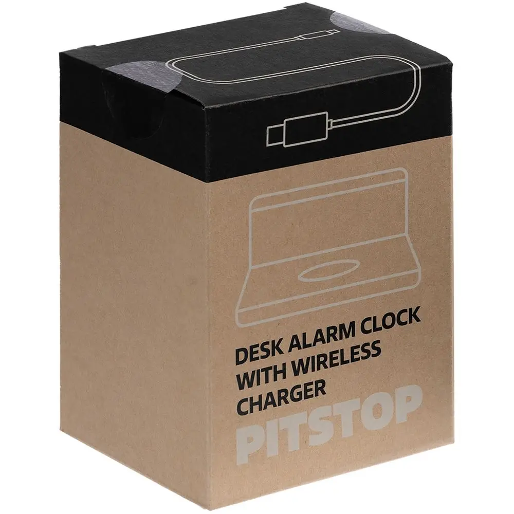 Часы настольные с беспроводным зарядным устройством Pitstop, белые