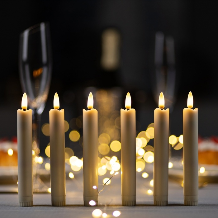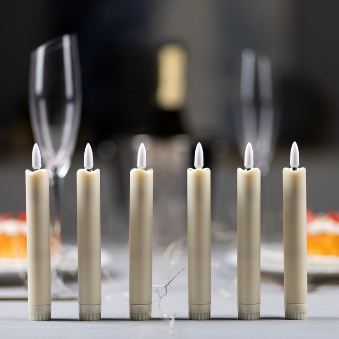 Светодиодная свеча восковая «Классика» 2 x 16.5 см, АААx2 (не в компл.), набор 6 шт, свечение тёплое белое