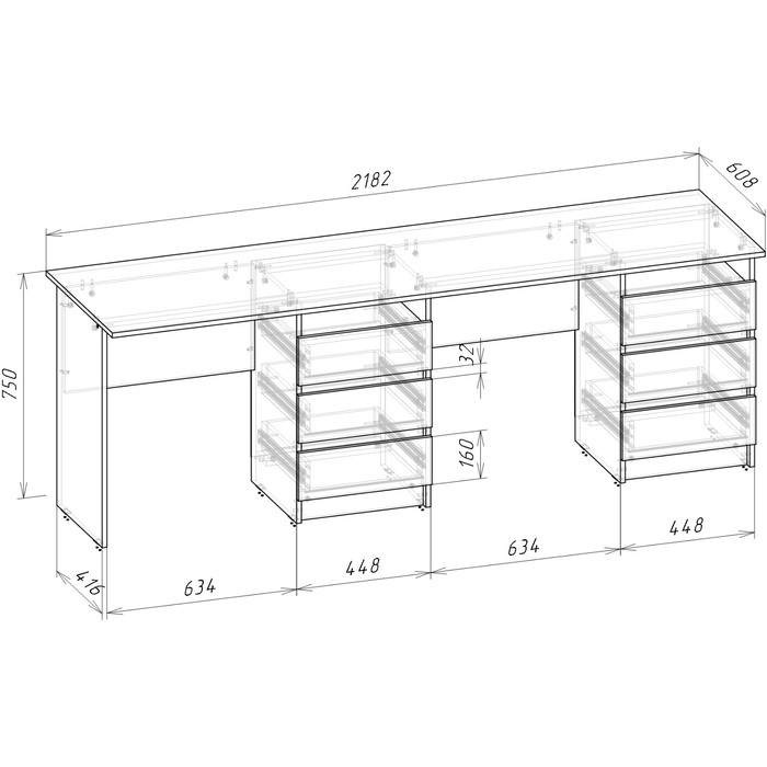 Стол письменный тандем Зара 0,75х2,18х0,61м