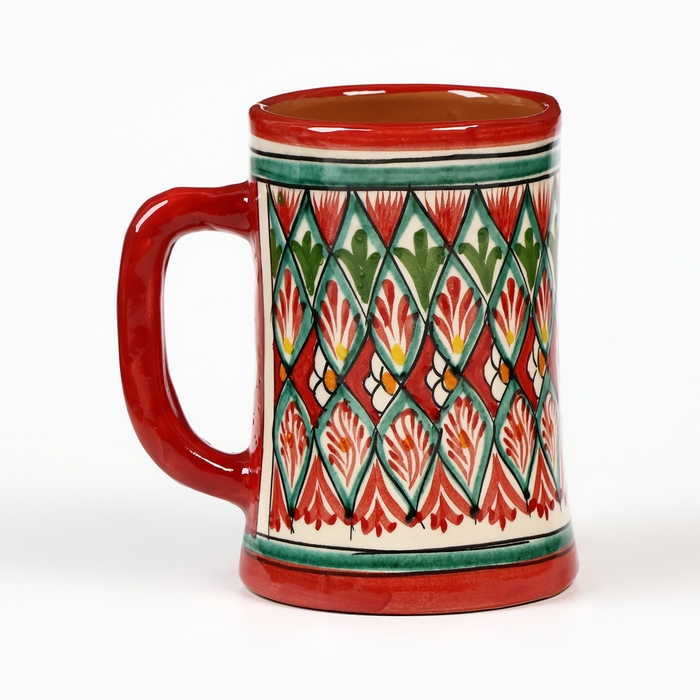 Кружка Риштанская Керамика "Узоры" 500 мл, красная