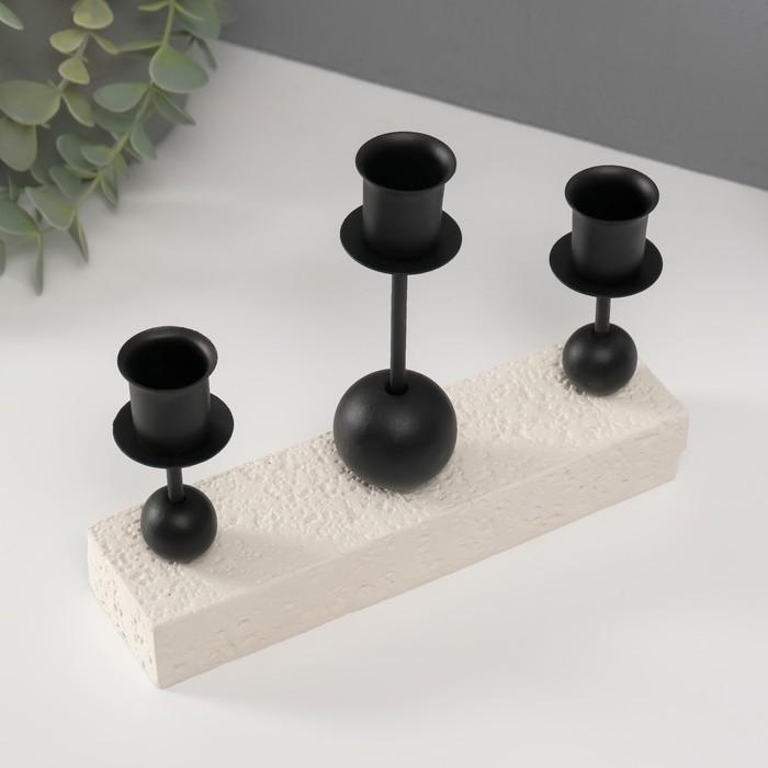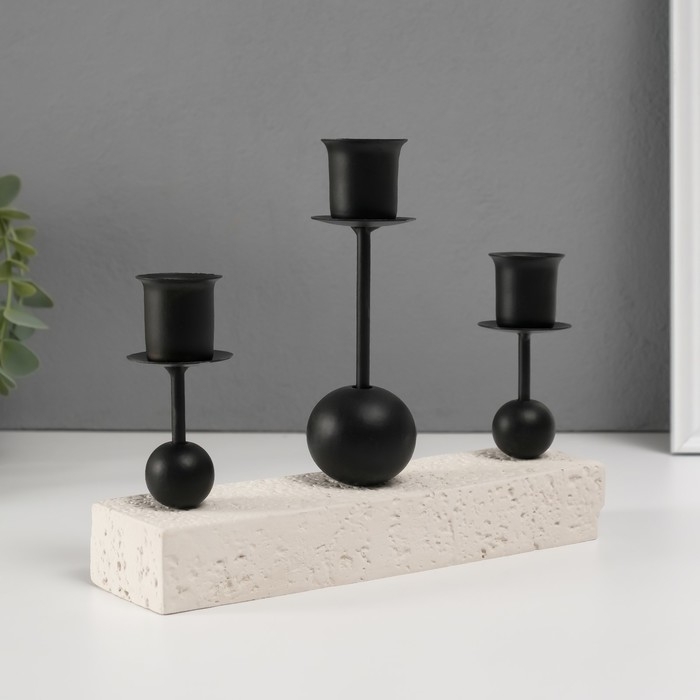 Подсвечник гипс, металл на 3 свечи "Три шарика" d=2,5 см 5,5х20,4х15 см
