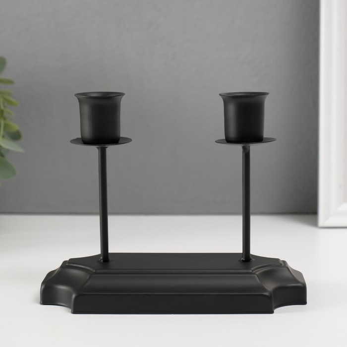 Подсвечник металл на 2 свечи "Аристотель" чёрный d=2,5 см 8х16х12 см