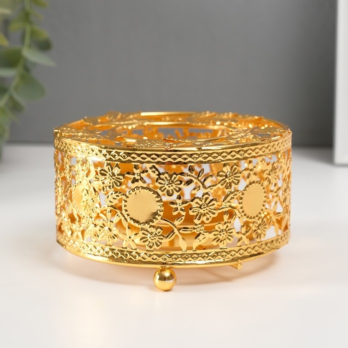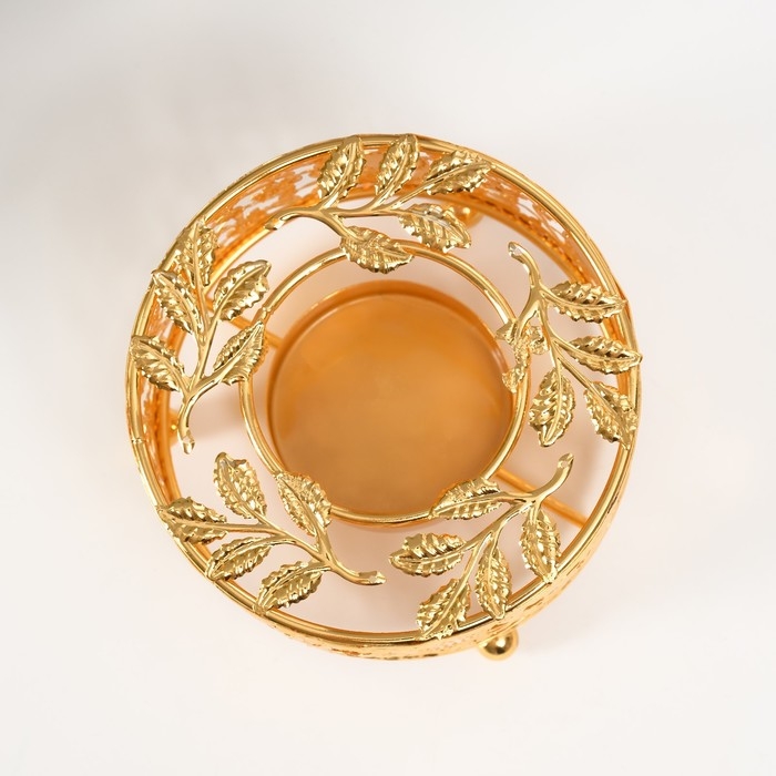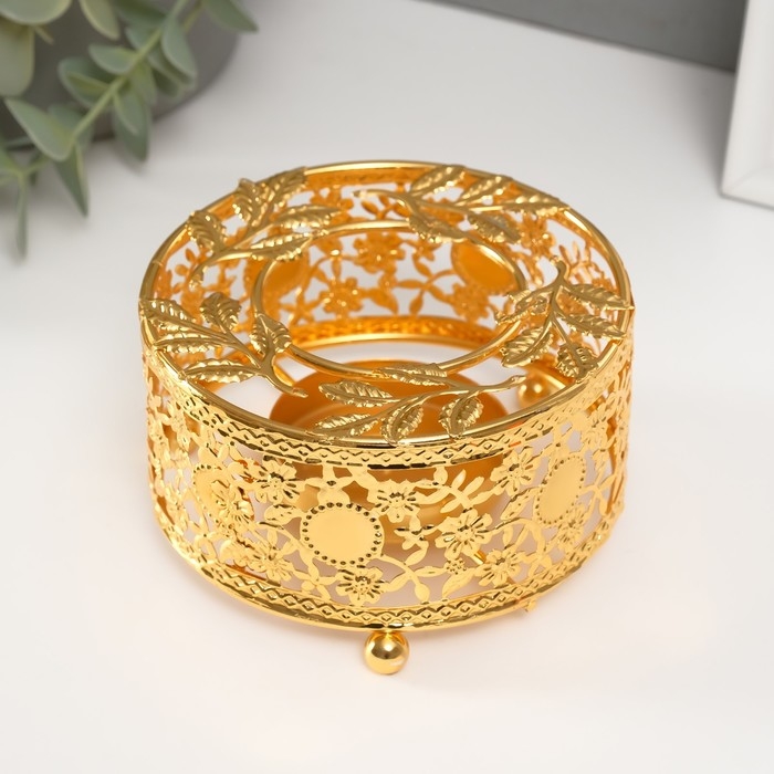 Подсвечник металл на 1 свечу "Круг. Венок из листьев" золото d=5,5 см 11х11х5,6 см