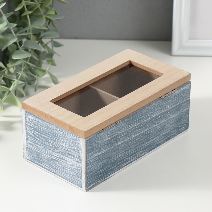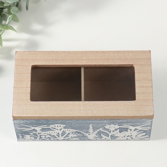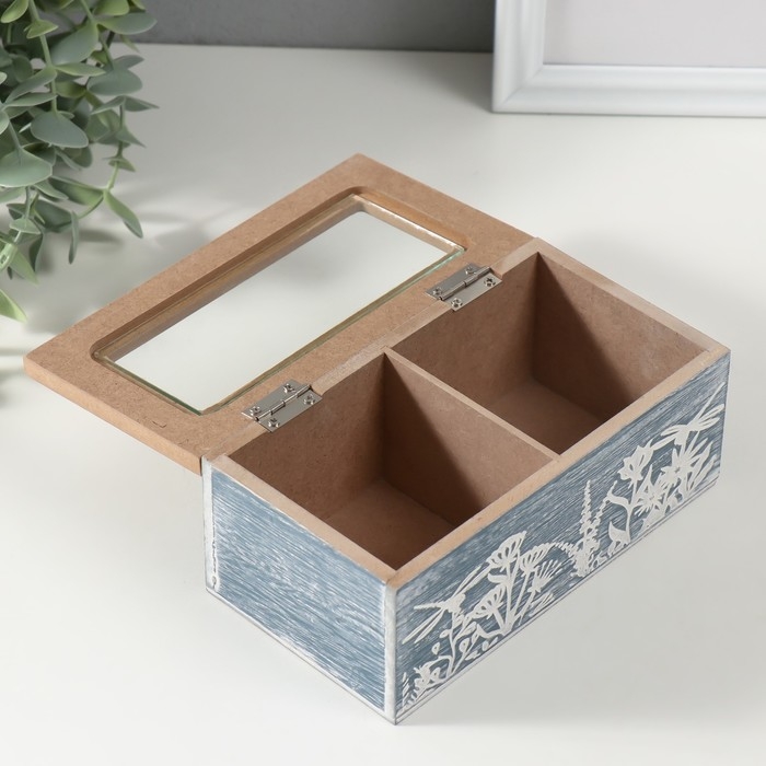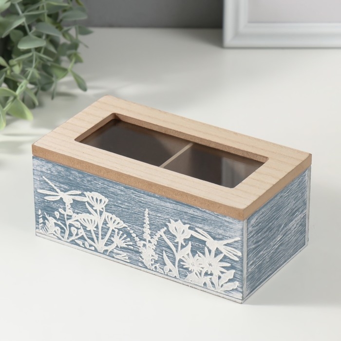Шкатулка дерево 2 деления "Стрекозы и цветы" синяя 8,8х16,2х7 см