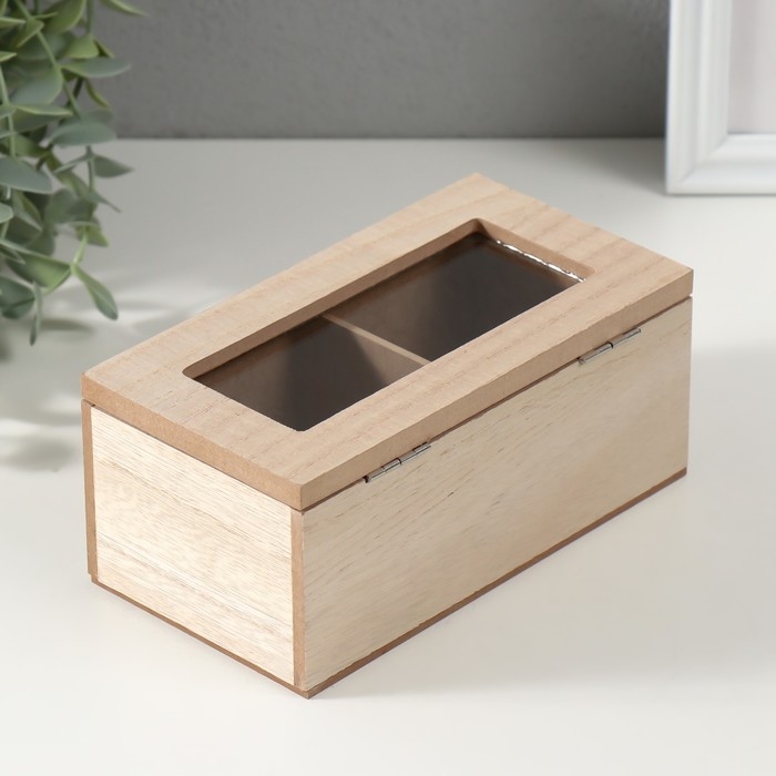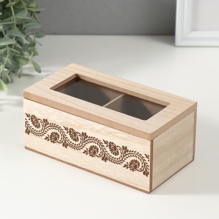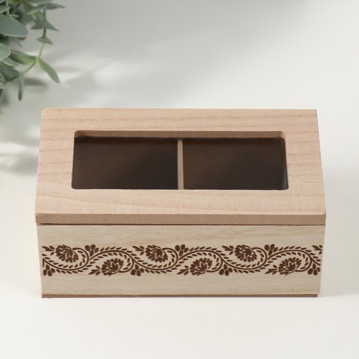 Шкатулка дерево 2 деления "Цветочный узор" 8,8х16,2х7 см