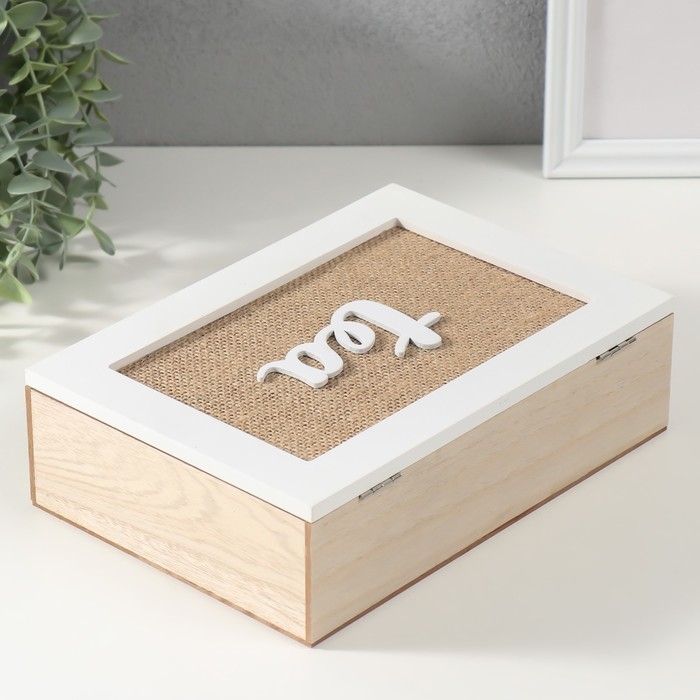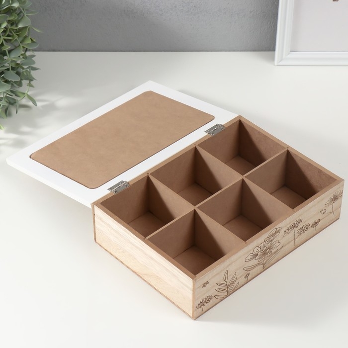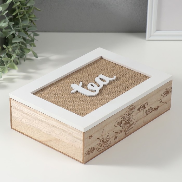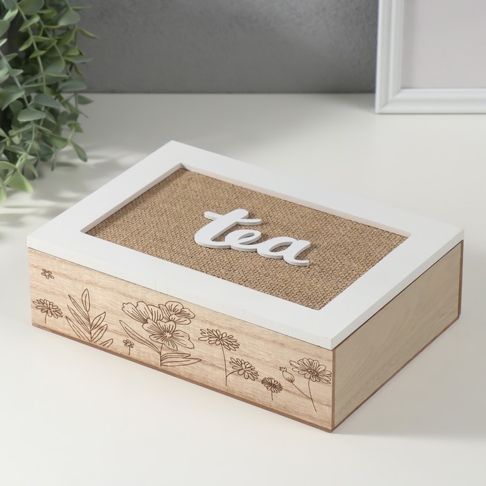 Шкатулка дерево 6 делений "Полевые растения" мешковина 17х24х7 см
