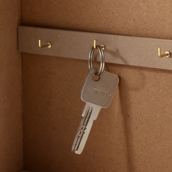 Ключница дерево 6 крючков "Грибы" бежево-синяя 6,2х19,5х25,2 см