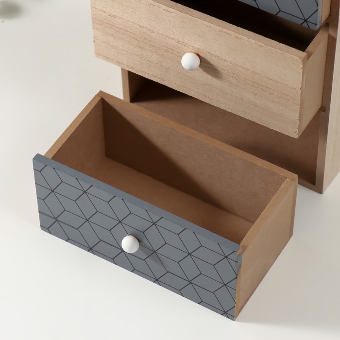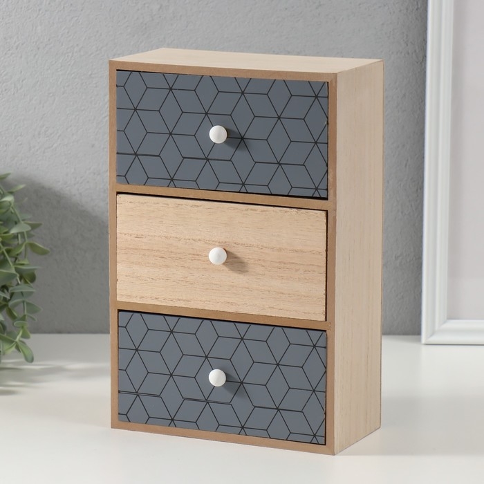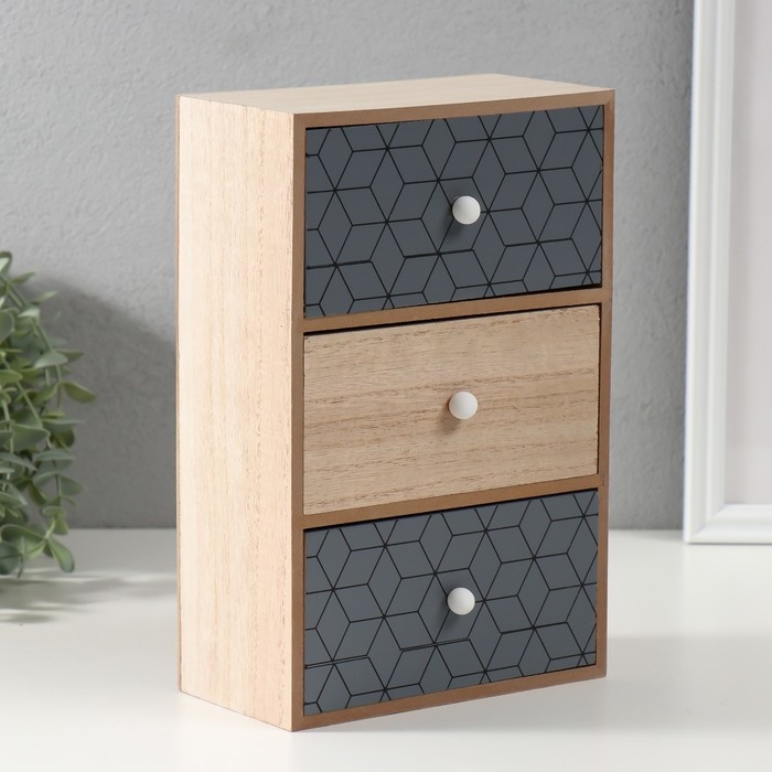 Шкатулка дерево 3 ящика "Геометрия" беж с чёрным 10х17,2х26 см