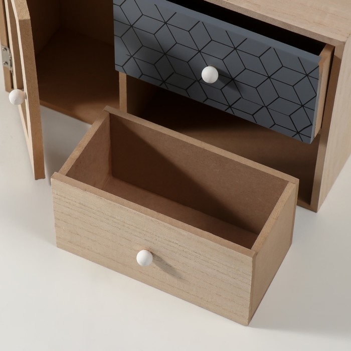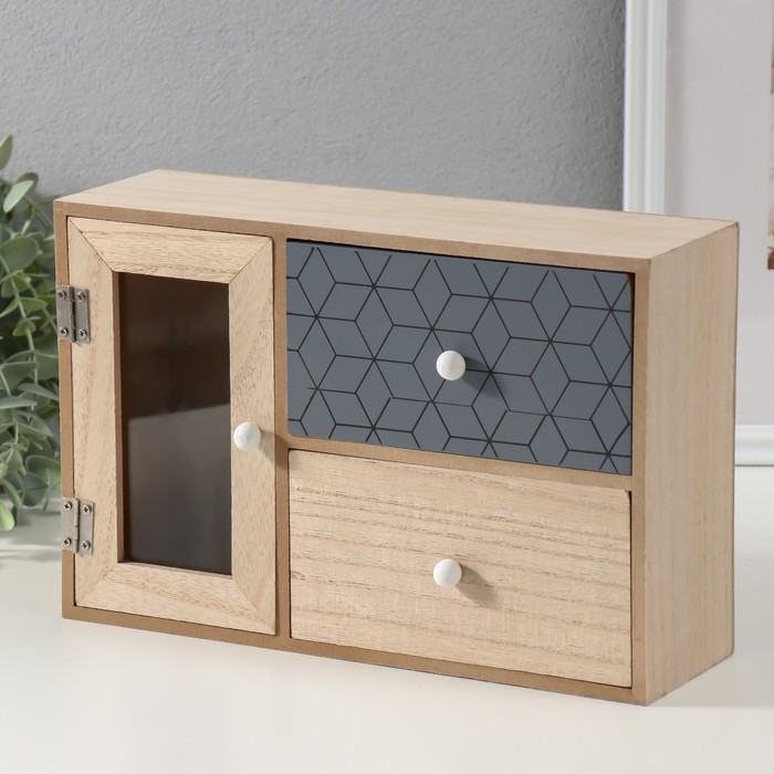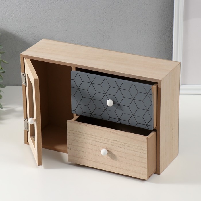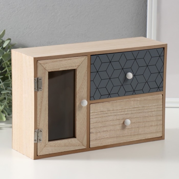 Шкатулка дерево 2 ящика и дверца "Геометрия" беж с чёрным 9,5х28х18,5 см