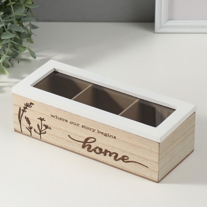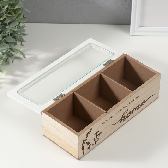 Шкатулка дерево с делениями "Разнотравье" 23х9х8,3 см