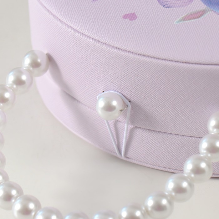 Шкатулка кожзам для украшений сумочка "Малышка-ангел у домика" сирень 19х15,5х7,5 см