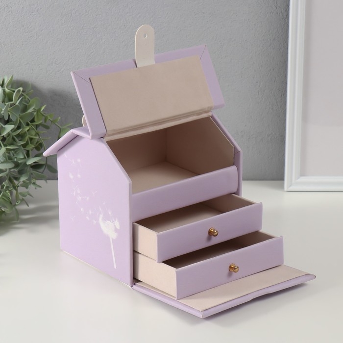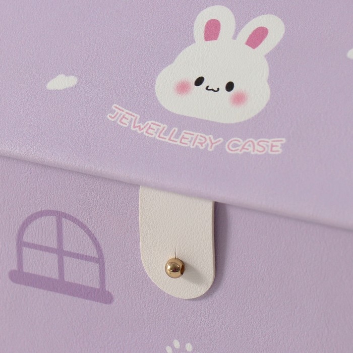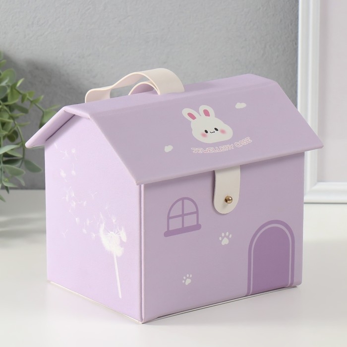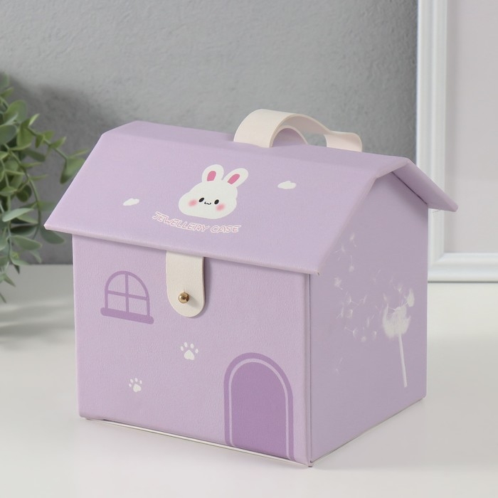 Шкатулка кожзам для украшений домик "Зайка" сирень 16,5х19х16,5 см