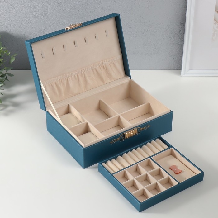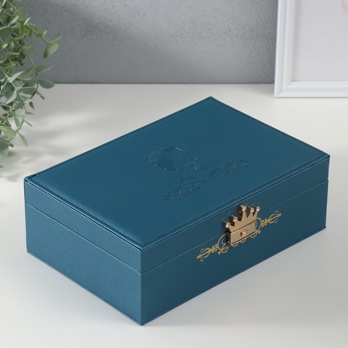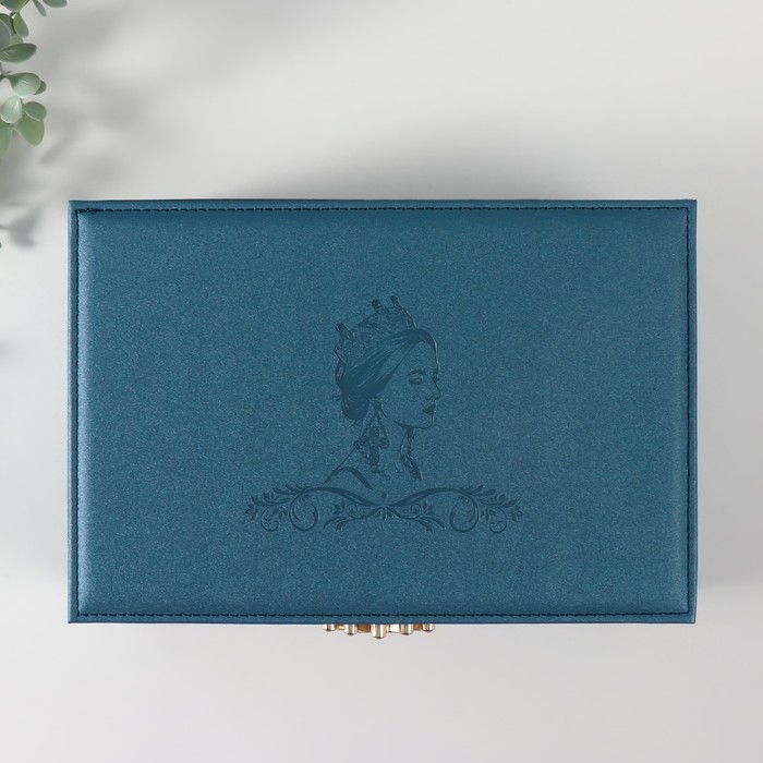 Шкатулка кожзам для украшений "Царица" синяя 18х27х9 см