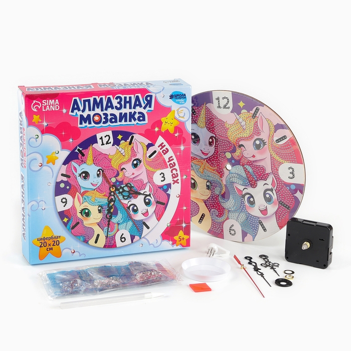 Алмазная мозаика для детей с частичным заполнением на часах «Единорожки», 20 х 20 см