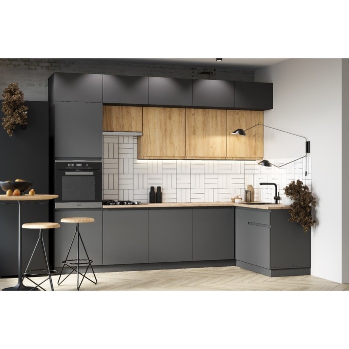 Кухонный гарнитур угловой в потолок 3000х1600 Виктория, Графит/Дуб крафт