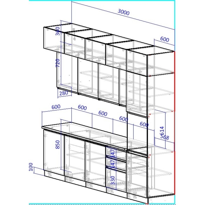 - Высота кухни: 2527 мм.